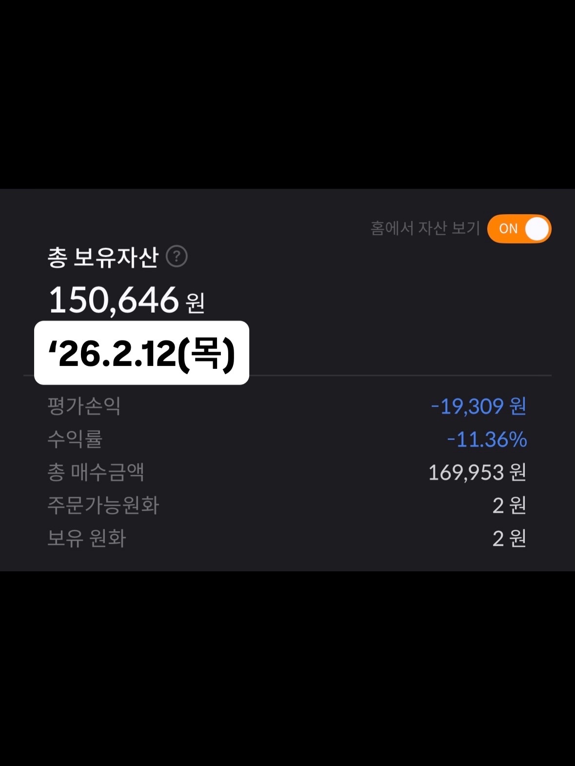| [코인 매일 투자일지] 15일차 – 손실 유지 속 구조 안정, 평균단가가 버팀목이 되다 - '26.2.10(화) (0) | 2026.02.22 |